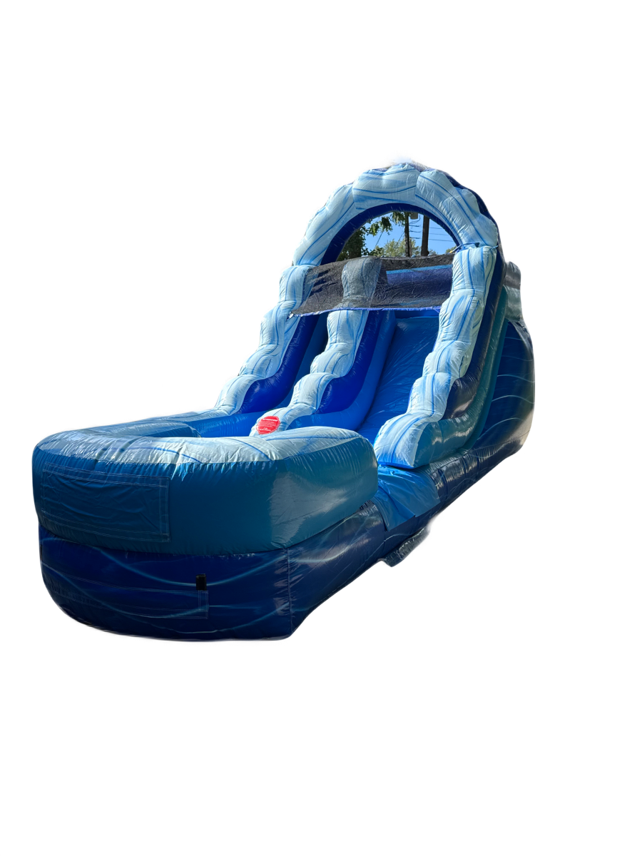 - Eye-Catching Design: The vibrant wavy sky pattern and bold blue color make this water slide a standout attraction at any event.